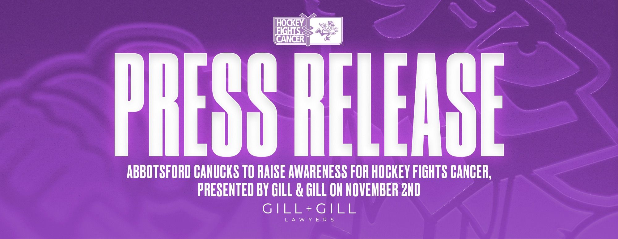Abbotsford, BC– The Abbotsford Canucks will commemorate Hockey Fights Cancer, presented by Gill & Gill, on Sunday, November 2nd at 4:00pm when the team hosts the Henderson Silver Knights. This special night honours all those affected by cancer and shines a light on the collective effort to raise awareness and support individuals and families navigating its challenges.